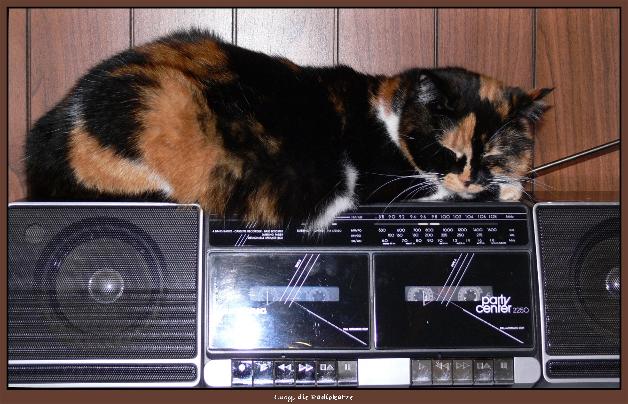 Katze Lucy liegt besonders gerne auf dem Radio.
